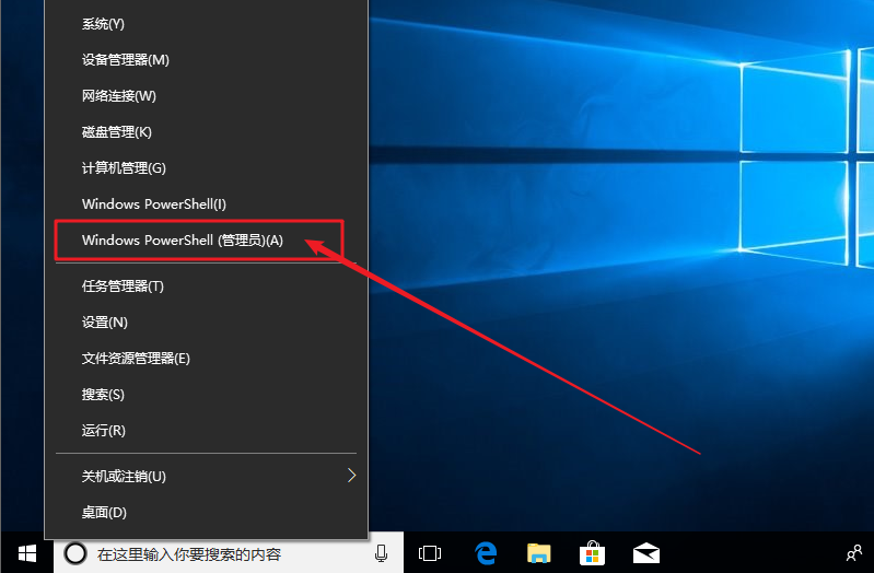 4、按热键Win+x打开win10菜单列表,点击“Windows PowerShell(管理员)”选项,如图: