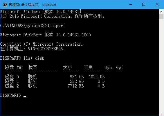 7、从容量上判断可知磁盘2是我们指定的u盘,所以执行select disk 2命令;