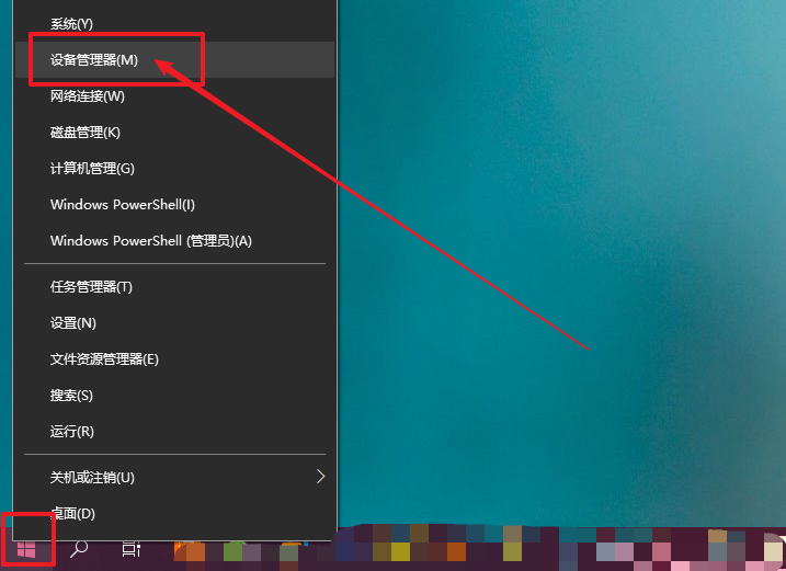 6、有部分朋友不知道设备类GUID的,请参考以下步骤操作:右键开始菜单,点击“设备管理器”