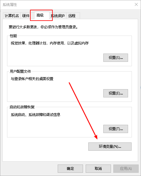 4、在弹出的窗口中,定位高级,点击环境变量。