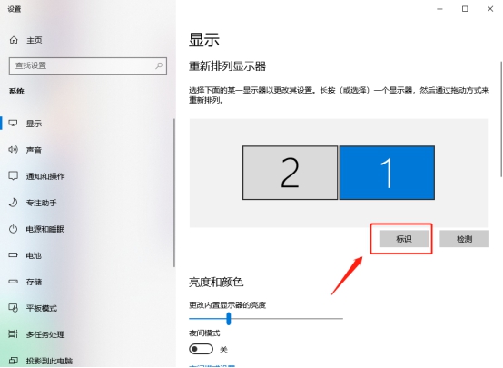 进入显示页,点击“标识”按钮对两个显示器进行标识。