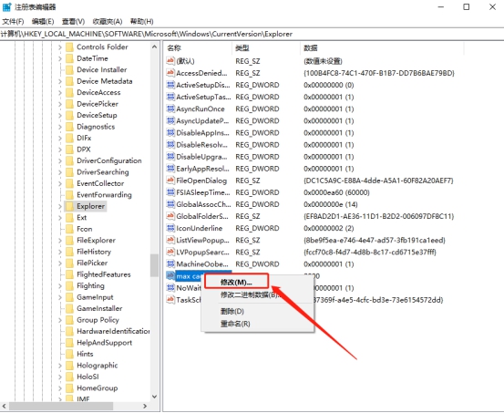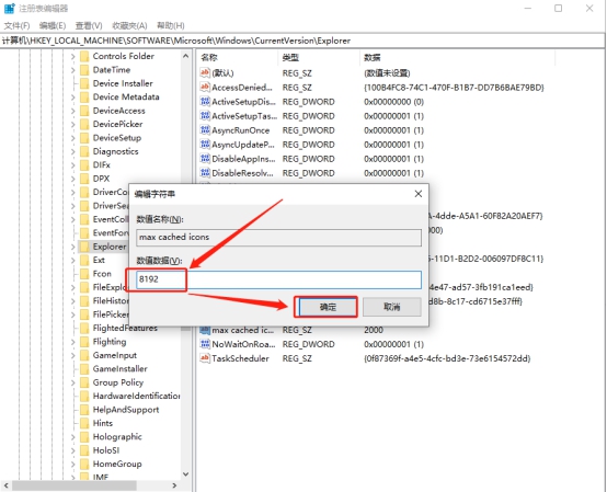 右键点击“Max Cached Icons”项,选择右键菜单中的“修改”,将其数值更改为“8192”即可(最大值即为8192),最后点击“确定”。