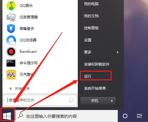 首先,点击电脑屏幕左下角的微软图标,选择系统菜单中的运行;或者直接使用组合键“win+R”快速打开运行页。