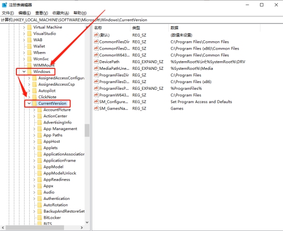 然后继续依次打开“Windows”文件夹和“CurrentVersion”文件夹。