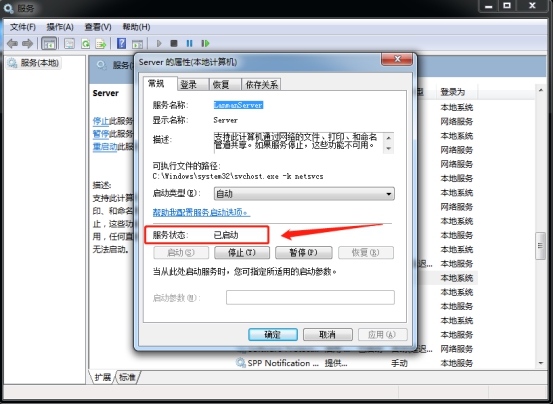 找到后双击打开,在常规版面中将服务状态设置为“已启动”状态,然后点击确定。