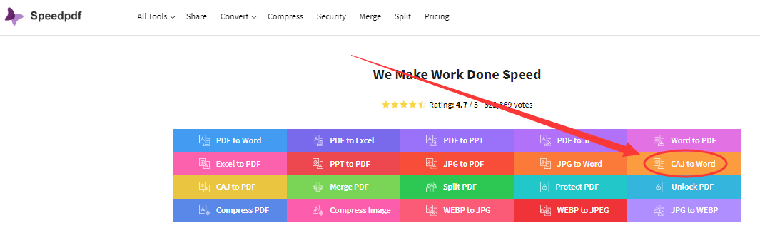 第一步搜索Speedpdf找到这个转换器进入后,选择 caj to word进入转换;