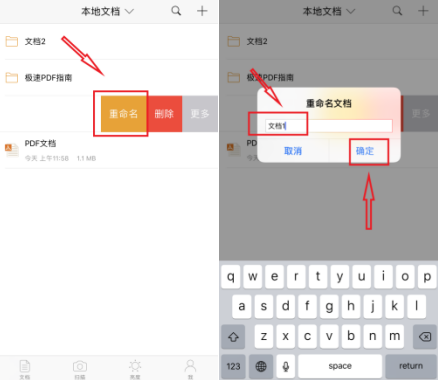 另外我们在任意文件夹处左滑还可以修改文件夹的名称以及删除等操作。