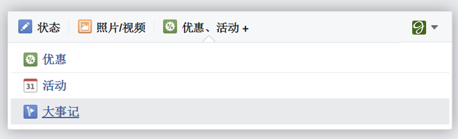 ● 点击“优惠、活动 +”,然后选择“大事记”