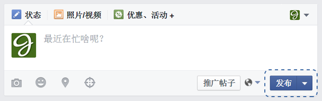 状态更新可以是你认为客户会感兴趣的任何内容,例如:促销公告或新品照片。所有帖子都会显示在主页上,并可能会显示在主页点赞用户的动态消息中。