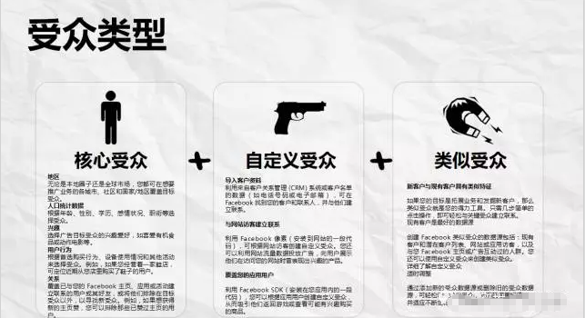 受众有三种:核心受众、自定义受众、类似受众。下面是三种受众的明细。