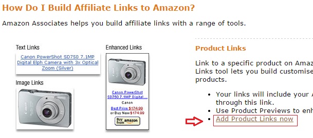 如果你想推广亚马逊Amazon.com及Endless.com特定产品,可以单独为这个产品制作一个链接,包括这个产品的一些信息。这种链接形式主要有:文字链接(text links)、文字与图像混合链接(Text and Image links)以及只是图像链接(Image links)。如下图所示: