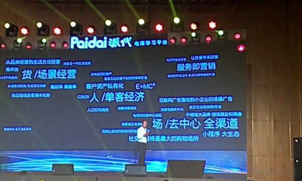 连总一上台透露最近去印度比较多,小蜜一脸坏笑(加上小管的坏笑),当然还因为印度是离中国最近的发展中国家,具有一个巨大的市场,恩,还可能今天是七夕。在今年年会里面可以说是ppt字数最少的一个演讲,6个字,请看下面关键词(请关注派代网公众号,有直播、互动、抽奖等环节)