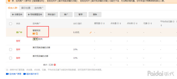 还有一个东西需要我们手动去关闭,这个是针对有定向推广的入口的派友们,这里是默认打开的,出价也是默认出价,随着计划权重和链接的权重提高,这里可能会在后期拉低我们的计划数据。请看图片: