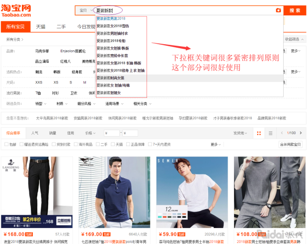 如果这样搜索,将找不到宝贝;淘宝引擎会推荐搜索量大的关键词:“男士 衬衫 夏装 裙”、“2108男士衬衫、“衬衫 夏款”。淘宝搜索引擎已经标记,这些词的权重是最高的。如果我们用以上词组合起来的标题,去搜索全标题,如果组合的方式方法不对,淘宝搜索引擎就会认为这是一个错误的标题,在自然搜索的端口搜索关键词我们的宝贝都不会优先展示。如果正确写作标题和正确优化标题,对关键词的选择和顺序进行优化,直到我们的宝贝在自然搜索端口可以被很多关键词搜索到,那么我们的标题就是一个非常好的标题。
