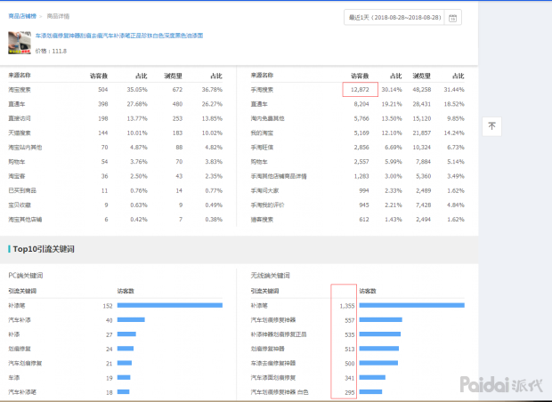 TOP10的引流关键词访客数大家可以加一下看看,其实这部分访客在总的搜索访客中的占比不是很大,并没有占据整体搜索的大部分,所以这个词路叠加是有必要的,因为能激发出来很多相关流量。