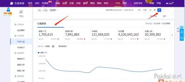 这是新版生意参谋的市场大盘界面,相当于之前市场行情的行业大盘,但是这里可以看到几年前的行业数据。