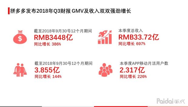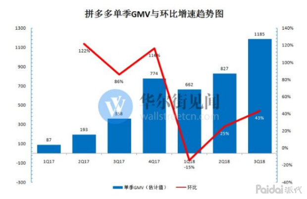 11月20日,拼多多发布Q3财报,同比增长数据非常好;2018财年的GMV会非常不错,超4000亿毫无压力。