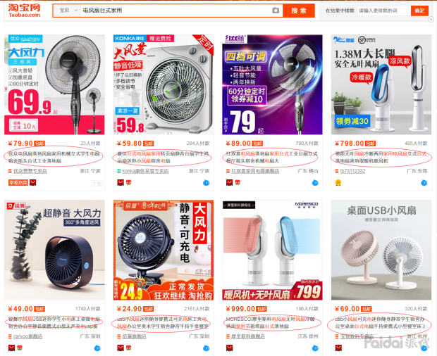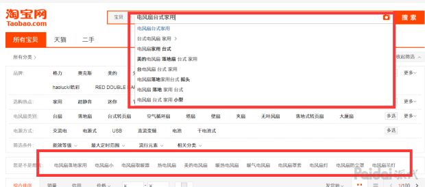 比如说我们搜索这样一个关键词“电风扇 台式 家用”