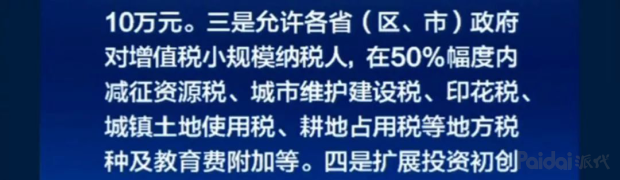 3.允许各省(区、市)政府对增值税小规模纳税人,在50%幅度内减征资源税、城市维护建设税、印花税、城镇土地使用税、耕地占用税等地方税种及教育费附加、地方教育附加。