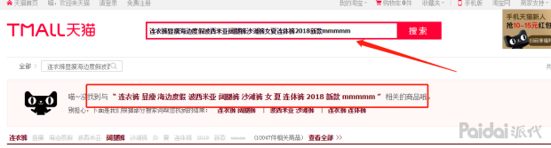 第1步,先将该宝贝的标题全复制,放入到天猫搜索框,然后再在标题后面加入几个数字或字母,然后点击搜索,天猫搜索可以把该标题里所包含的一些词根拆分出来。