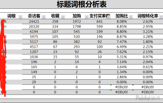 第3步然后再把拆分好的词根复制在表格中,再把下载下来关键词数据表格里包含词根相关词根的数据都累积起来,就可以得出这些词根的近30天里的数据。