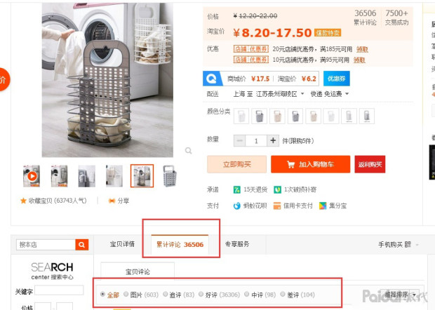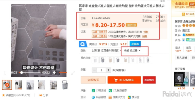 再看这个脏衣篓,有一定的体积,需要考虑仓储以及物流计价,打包也更耗时,居然还能做到8.2包邮,让人不禁有点好奇,点开一看。
