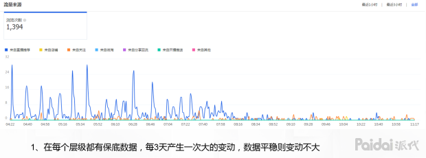淘宝直播属于内容数据,通过阿里创作平台看内容数据时,可明显看到数据每3天剧烈波动一次,每天8小时直播,半个月时间实现观看人数从0增长至18000人,即使中间有1天断播,对数据影响不大。简单来说,浮现权+历史数据=初期保底推荐流量,初期保底推荐流量+实时直播推荐流量权重(也就是实时直播的好坏),3天一次数据平均,然后进行排位,排位的增长,会带来更高的保底数据。如此往复循环。