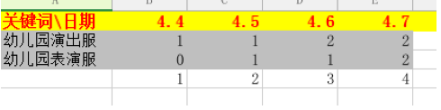 经过我们多次反复测试:第一个权重周期是系统收录时间,不需要刷太多的单,操作的越多,死的越快,心越急越是死的惨!这里可以把我们的测试结果分享给大家,那就是在第一个权重周期的四天里,单量只需要保持最基础最基础的递增就可以了,什么是最基础的递增呢,就是1-2-3-4这样,很简单,那么第二个点就是,单量知道了,我的关键词要怎么去选呢,每个人肯定都有每个人的操作手法,这个地方可以分享一下我们的实践经验,今年操作的关键词不宜太多,之前可能会有很多都是采用一拖三,三拖六或者三拖九的方式,把一个词系一个词系的拿下来,但是今年这个模式很难走通;我们的经验值就是直接干两个词,固定死,就干两个词,而且这两个词是跟你这个产品相关的大词,比方说“幼儿园演出服”、“幼儿园表演服”,新品上来直接操作这两个词就行了,那么问题来了,很多人会问,我一个新品直接上来就操作这个大词,根本找不到,这个点也可以免费分享给大家,直接用卡首屏的二维码,很多人可能会怀疑二维码的效果,我可以很负责任的告诉你效果妥妥的,为防止知道的人太多而失效,第一个权重周期的关键词和单量都解决了,这个地方给他家附上一个表格,更加直观: