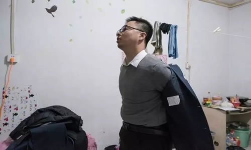 他是4楼阴面的租户,曾不得不和两个朋友分享一个单间两张床。最困难时,他买了6块钱馒头后兜里只有1块5毛钱。