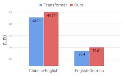 通过将该方法应用于标准的汉英和英德翻译基准中,证明了我们的方法是有效的。与竞争性 Transformer 模型相比,我们观察到 BLEU 值分别显著提高 2.8(汉英翻译)和 1.6(英德翻译),获得了新的最佳性能。
