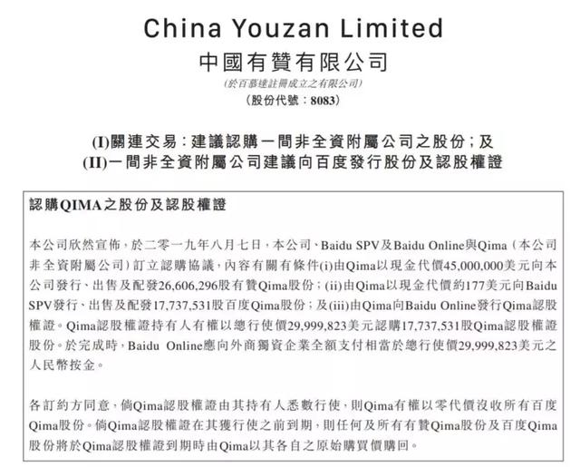 8月8日,SaaS服务商有赞发公告称有赞控股实体获得百度投资,金额在3000万美元左右。融资完成后,有赞将成为百度智能小程序战略合作伙伴,获得百度从资金到资源的全方位支持,两者将联手为品牌商打造“有交易能力的新官网”。