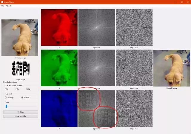 举个栗子,在火锅这张图片上通过频谱转换添加上了 「 差评吉祥物 」的水印,加上隐水印的火锅图片人眼看上去和原图片区别并不大,但在频谱上确确实实有差评的签名。。
