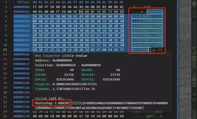 之后差评君又从 Facebook 上下载了几张图片,查看了一下十六进制编码信息。