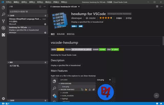 能够查看图片的十六进制编码的工具有很多,差评君这次使用的是 VS Code 内的十六进制查看插件「 hexdump for VSCode 」。