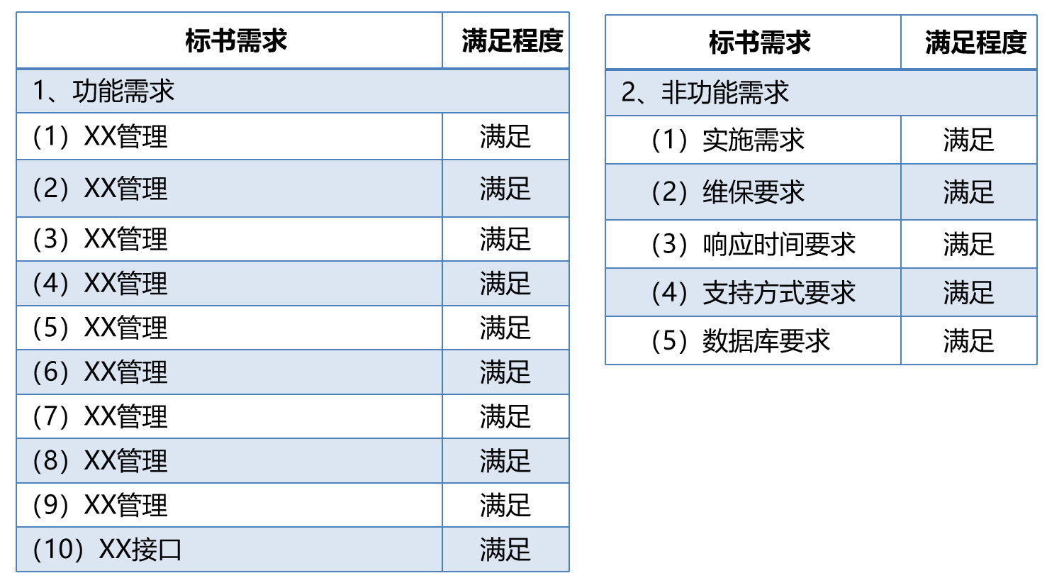 这页PPT没有没关系,有就是优势,以表格形式将招标书的所有需求列一遍,然后说明下满足或不满足或部分满足。(一般都写满足,即使部分不满足或不满足)