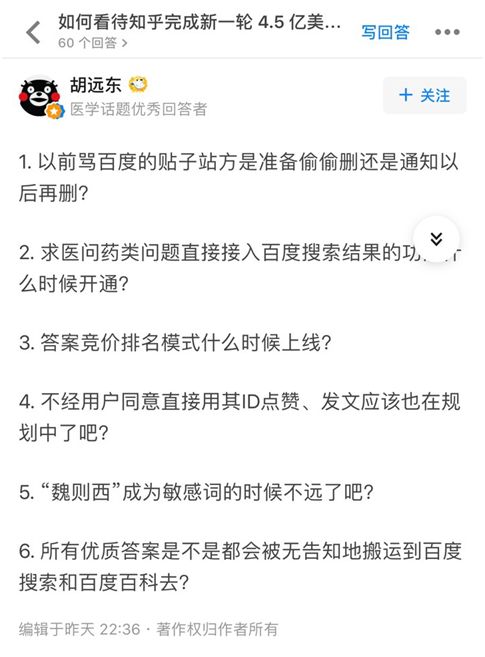 对此,知乎小管家表示很无辜,“我们这么多投资方,哪位妨碍大家讨论了呀?”