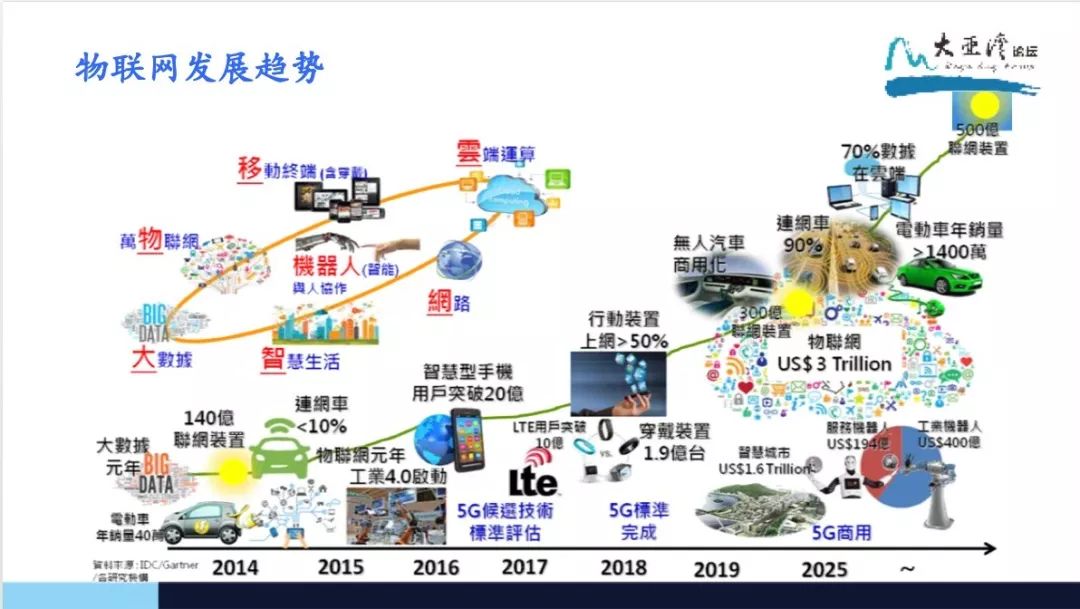 这就是未来的市场,未来我们要的东西。用王杰博士的一个例子说什么叫物联网?以智慧交通为例,传统红绿灯让驾驶员看到红灯就要停下来,因为这是法规,这是传统思维。以物联网为基础的智慧交通摄像头快速分析实时的交通状况,甚至可为驾驶员减少一次汽车的停下来时间,可以节省通行时间,减少pm2.5值排放。