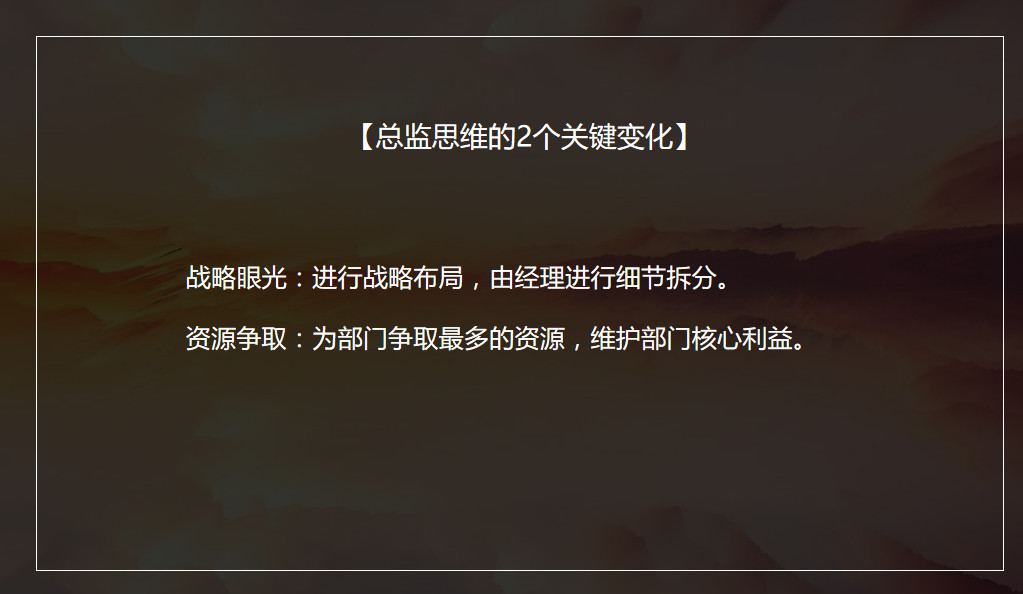 4. 总监阶段,更多的是思考战略布局和为部门争取更多的资源。