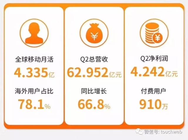 欢聚时代第二季度全球平均移动月活跃访问用户达4.335亿人,约78.1%用户来自海外市场。