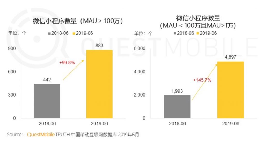 根据QuestMobile关于微信小程序的数据显示,截至 2019 年 6 月,MAU超过 100 万的小程序当中,约有 320 款小游戏MAU超过 100 万,与去年同期持平。而在MAU超过 500 万的小程序当中有 24 款小游戏,去年同期为 66 款千万级。