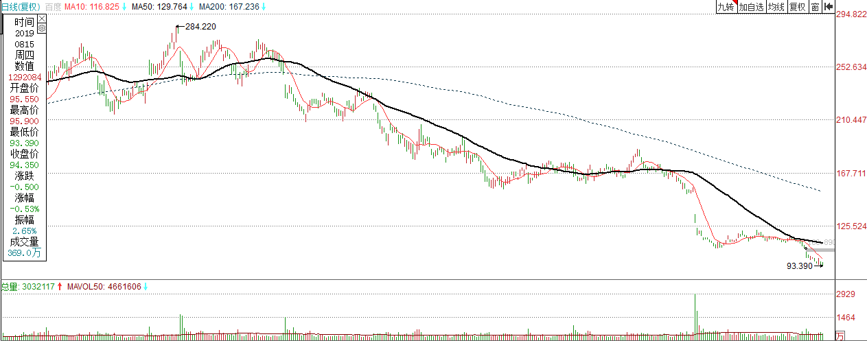 看一下现在百度和网易股价的走势情况: