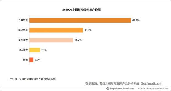 今年年初,艾媒咨询年初公布的《2019Q1中国移动搜索市场研究报告》显示,百度已经坐拥国内近70%的搜索市场份额,其龙头地位仍旧无可撼动。
