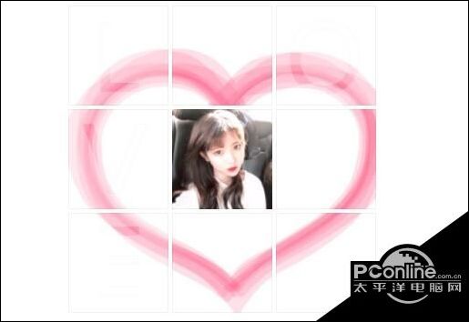 第一套:LOVE爱心粉色九宫格它是一个用不同的方块的虚线线条勾画的爱心,同时拖出残影的效果,是PS中典型故障艺术的运用,配合七夕主题非常般配,图片选择自己所要表白的人的照片。