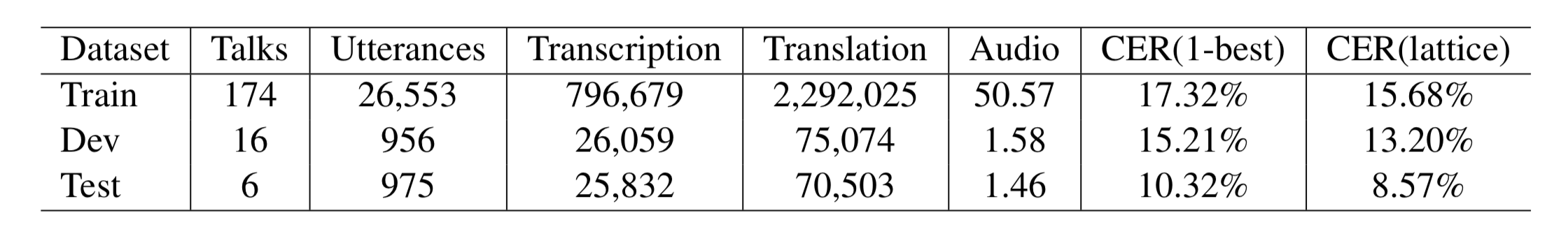 百度翻译团队还发布了全球首个中文-英文演讲场景语音翻译数据集(BSTC)。该数据集总共包含超过50小时的演讲语音和对应的转录文本、时间轴、翻译文本等数据资源,涉及IT、经济、文化、生物、艺术等演讲主题。 该数据集填补了机器同传研究没有真实数据集的空白,对推动相关研究具有重要作用。