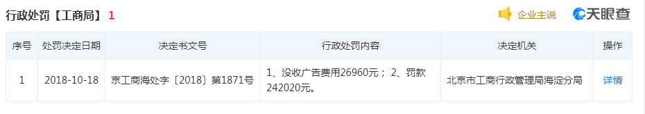 今年1月,互动百科突发公告,表示公司于去年10月,收到了北京市工商行政管理局海淀分局出具的《行政处罚决定书》。