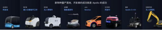 最直观的例子便是,Apollo 凭借架构完整,能力丰富,覆盖领域广,能帮助合作火爆结合车辆和硬件系统,快速搭建起一套属于自己的自动驾驶系统,使得各行业开发者得以避免“重复制造轮子”,将研发精力投入加速量产落地。比如,阿波龙目前已经搭载 4 万名乘客,在 25 个城市落地运营;智行者蜗小白智能环卫车,目前已经收货了千台以上的订单;新石器的无人零售车,目前已经完成了 16 万次以上的零售服务等等。