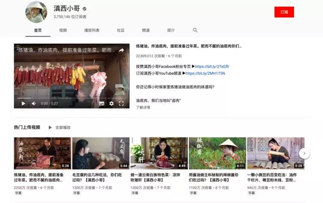 如果说滇西小哥的电商发展是厚积薄发,那么在YouTube上的表现可以堪称惊艳。