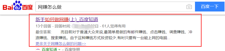 比如我现在想在互联赚钱,却不知道怎么做,这时候我就会上百度搜索“网赚怎么做?”