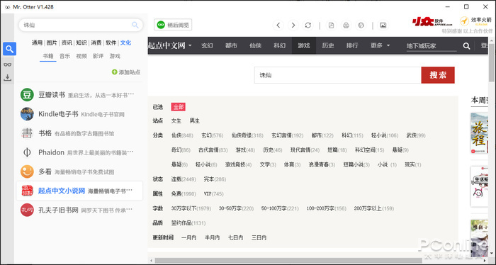Mr. Otter的操作界面很简单,左侧为搜索框以及各类搜索引擎的切换入口,右侧为内容显示区域。