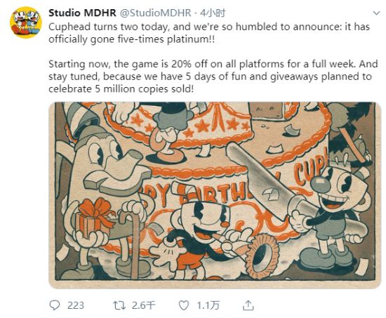 据 Studio MDHR 官方推特,在发售两周年之际,《茶杯头》销量已达 500 万份。为了进行庆祝,本作将在全平台开启 8 折促销。此外,《茶杯头》在不久前已正式登陆特斯拉 Model S、Model X 和 Model 3,更新 10.0 系统即可游玩本作,特斯拉车主们也可以享受啦。